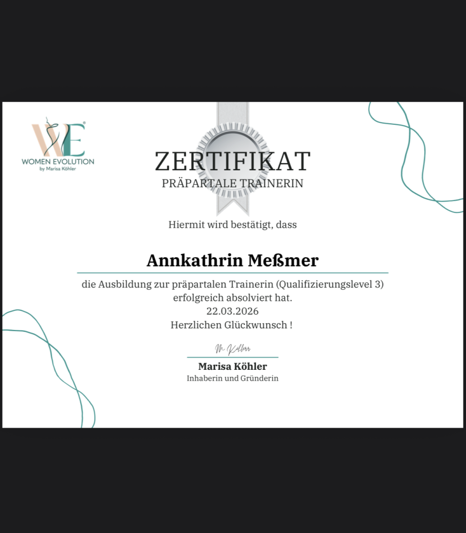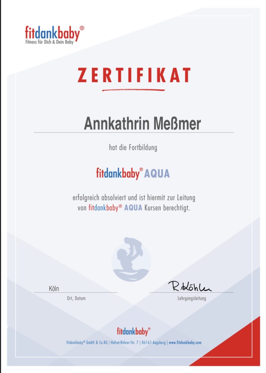 Ich habe mich zur fitdankbaby® Kursleitung ausbilden lassen und gebe bis heute mit Herz und Seele Fitnesskurse für Schwangere und Mama´s mit ihren Baby´s